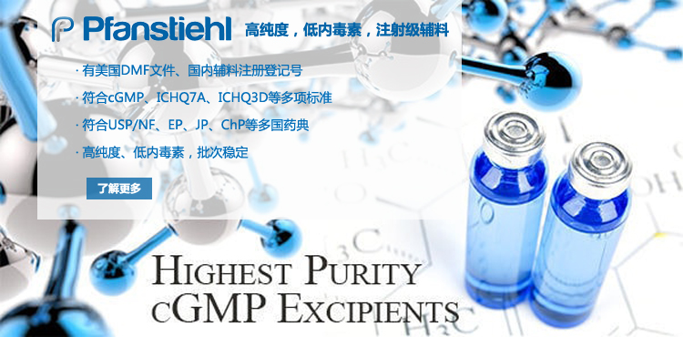“熱烈祝賀Pfanstiehl的注射級甘氨酸Glycine(G-140)喜獲CDE登記號F20250000403, 這是Pfanstiehl產品獲得的第18個CDE登記號!”甘氨酸在醫藥輔料制劑中應用廣泛,, 可作為緩沖劑,增溶劑,穩定劑等,具有諸多優勢。Pfanstiehl秉承一貫高品質理念,為滿足全球生物制藥行業對于高品質甘氨酸的需求,隆重推出的注射級甘氨酸Glycine (G-140), 具有超高純度,超低內毒素,超低金屬殘留的特點,單獨檢測29種金屬離子,并且新增DNA,RNA,DNA酶,RNA酶和脂肪酶,亞硝酸鹽等多項質量指標的檢測,符合多國藥典規定(USP, EP, BP, JPE, ChP),可用于生物治療性藥物和疫苗的生產。產品信息:· 產品名稱:Glycine, High Purity, Low Endotoxin, Low Metals, USP, EP, BP, JPE, ChP (G-140)· 中文名稱:甘氨酸· 分子式:C2H5NO2· 分子量:75.07 g / mol· CAS號:56-40-6· 產品貨號:G-140產品特點: · 超高純度,超低內毒素,超低微生物含量,超低金屬雜質殘留· 質量指標新增DNA,RNA,DNA酶,RNA酶,脂肪酶和亞硝酸鹽檢測· 符合多國藥典:USP, EP, BP, JPE, ChP· 符合ICH Q3D標準· 符合GMP標準· 已獲DMF和CDE登記號 產品應用:· 緩沖劑· 穩定劑· 增溶劑如果您對Pfanstiehl注射級別Glycine G-140感興趣,歡迎聯系Pfanstiehl 中國區代理商北京西美杰科技有限公司獲得如下詳細的產品概況說明文件和測試樣品。Pfanstiehl Inc.最新產品系列如下,歡迎聯系北京西美杰科技有限公司獲取100g裝免費樣品。北京西美杰科技有限公司為Pfanstiehl中國代理,為客戶提供完善的技術支持與售后服務。歡迎撥打西美杰客服電話400-050-4006或者登陸網站www_xmjsci_com.gsmzhuanqxz.cn了解更多信息。 更多>